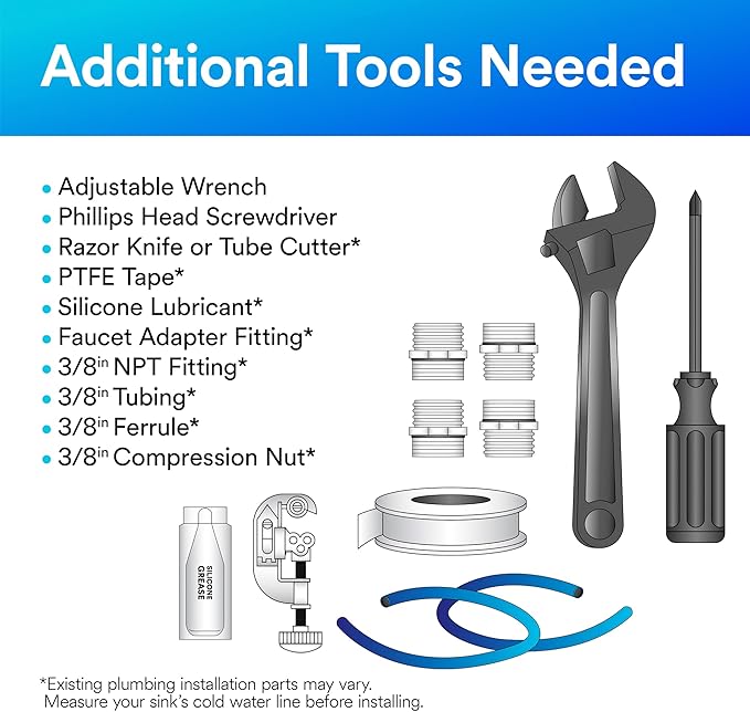 - Connects to the primary kitchen or bathroom water faucet for full flow filtration