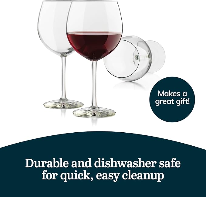 - Effortless Care: Measuring 8.3” tall and 4” wide, our dishwasher safe large wine glasses with stem offer a quick and easy clean up – handle these dishwasher safe wine glasses with care to preserve their charm for a long time.