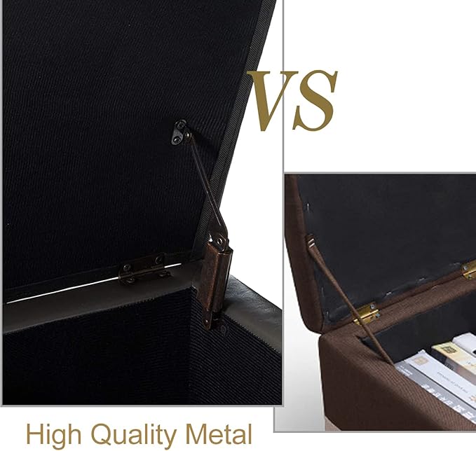 - SAFETY DESIGN: Constructed with a sturdy corner-blocked frame . Padded hinged lid stays open for safe access to storage space inside—great for your blanket and throw pillows.