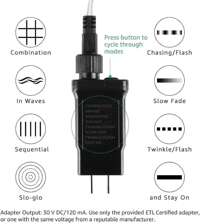 - [Safe & No Heat] Come with an ETL Certified transformer and operate at low voltage (30 V DC, 120 mA). This ensures they are safe to touch and use. Just remember to use the provided adapter or a reputable manufacturer's adapter with the same voltage.