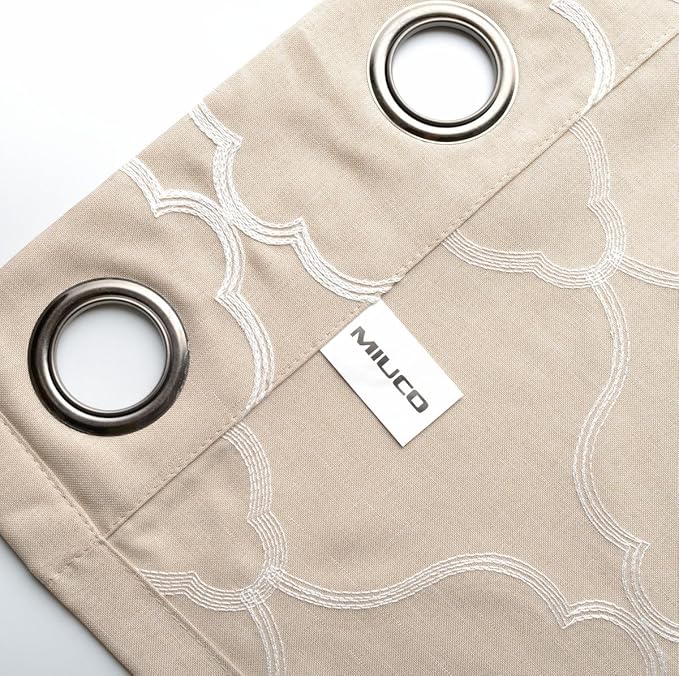 MIUCO Moroccan Embroidered Semi Sheer Curtains Faux Linen Grommet Window Drapes for Living Room 52 x 95 Inch 1 Pair Set, Linen
