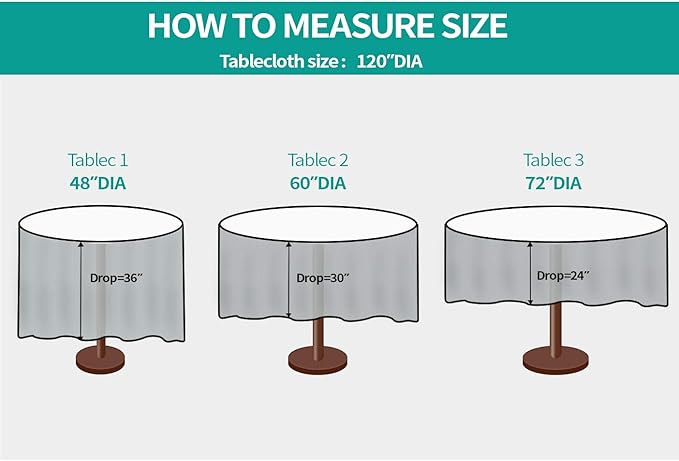 - Perfect size: This black tablecloth for round tables is available in a variety of sizes to choose from, perfect to meet a variety of needs. Note: please measure the length of the table and reserve the length of the hem before purchase