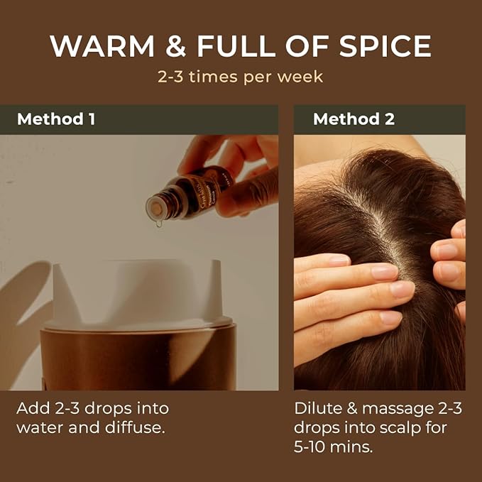 - Nourishes the scalp. Cinnamon oil is known to nourish and invigorate the scalp. Massage 2-3 drops with carrier oil for an invigorating experience.