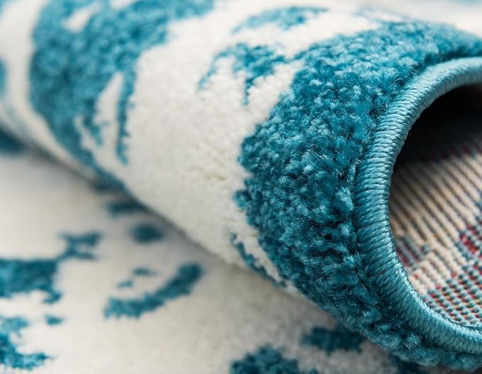 - Size in FT: 8' 0 x 8' 0 - Size in CM: 245x245 - Pile Height & Thickness: 1/2" - Colors: Blue, Ivory