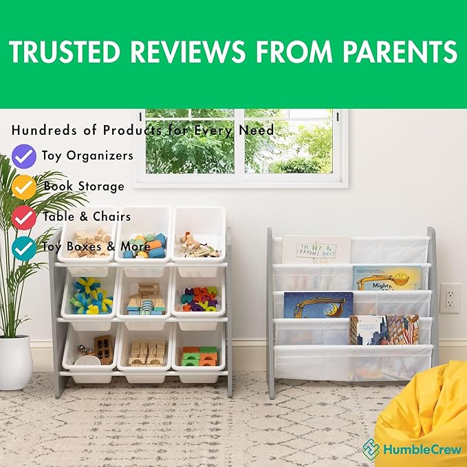 Humble Crew 9-Bin Toy Organizer – Inspire Grey with White Plastic Bins, 3-Tier Storage Solution for Kids' Playrooms and Nurseries