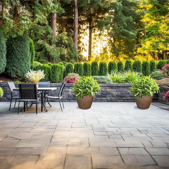 - LIGHTWEIGHT AND DURABLE: This patio planter pot is made from durable, linear low-density polyethylene (polyresin). Polyresin resists cracking from damaging UV rays and cold temperatures. The planter features a hand-painted finish that gives it a rich hue and weathered appearance. The flowerpot is lightweight and easy to carry to any indoor or outdoor space. Due to the manual painting process, some slight variations in color may occur.
