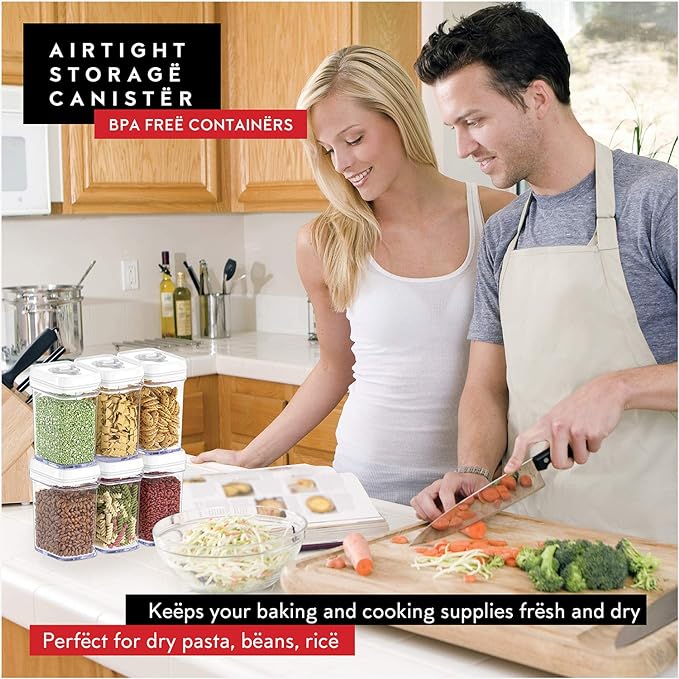 - Enjoy Fresh Food: Keep Your Foods Fresh with Our Easy to Use Airtight Lid-Lock Mechanism. No Dealing with Flimsy Pumps. Our Pantry Organizer Food Storage Containers Create an Airtight Seal by Simply Pushing Down the Ring on The Lid. Lift the Ring and Push Up Whenever You Want to Open the Pantry Storage Containers. The Airtight Seal Is So Secure You Can Store Liquids Without Ever Worrying About Leaks!