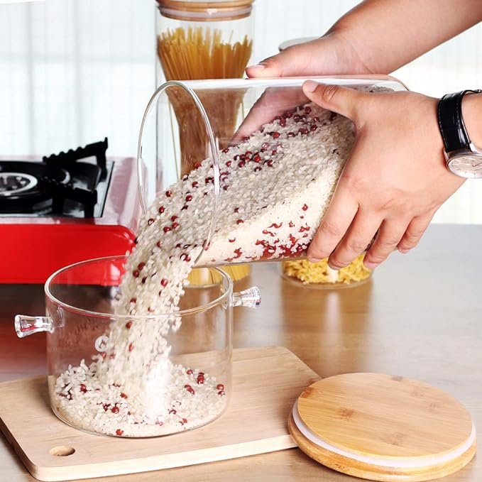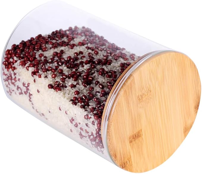 - [Large Capacity] The glass storage canister's size is 5.9x7.8 inch(15cmx20cm), bigger than other kitchen canisters. This large food storage jars can hold about 100 OZ(3000ml) liquid or 5.7 lbs(2.6 kg) rice.