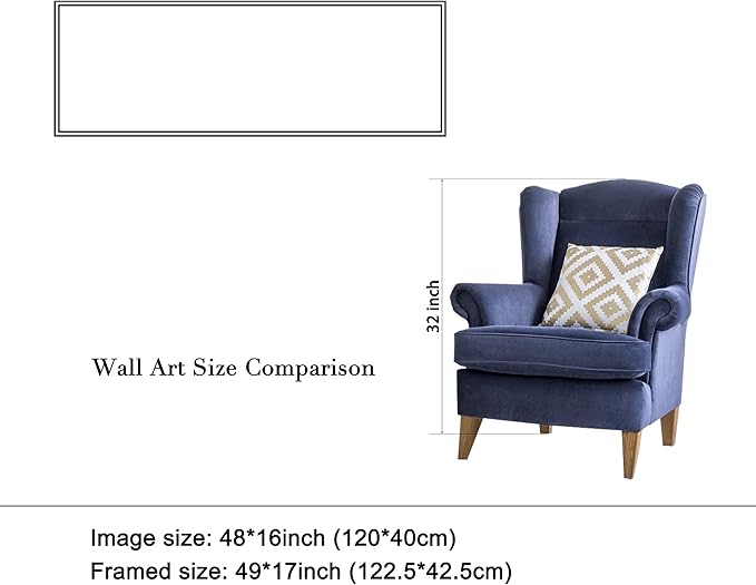- Art image Size:(W) 48 in x (H) 16 in. Finished Framed Size: (W) 49 in x (H) 17 in,1.4inch thick.