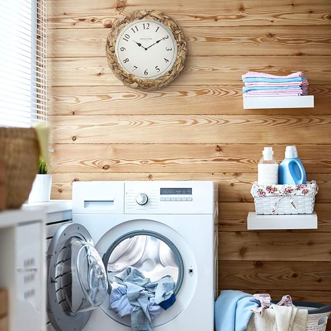 - ★【It's In The Details】: It is crafted of natural Water Hyacinth with a metal frame and high grade glass lens. Hands are made of premium aluminium metal to last long. Designed to tastefully add an accent of Color anywhere in the home. Modern farmhouse clock design with large and easy to read Arabic numerals.