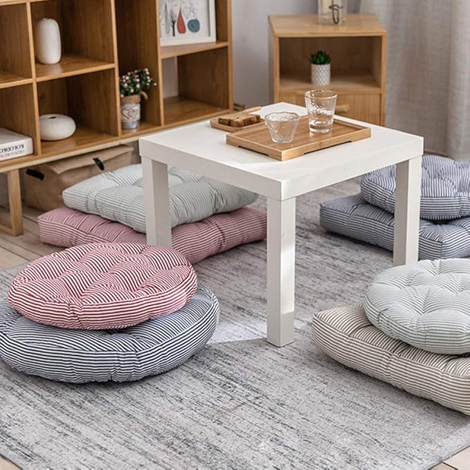 - 【Soft and Comfortable Home Floor Cushion】The cushion feels soft, delicate, warm and breathable. The stripe color is your most suitable choice which is perfect for indoor outdoor decoration or present. Special round hole design of the cushion can bring you massage-like comfort. The cushion makes you enjoy a high quality of life while for long time siting, travelling, or in the office.