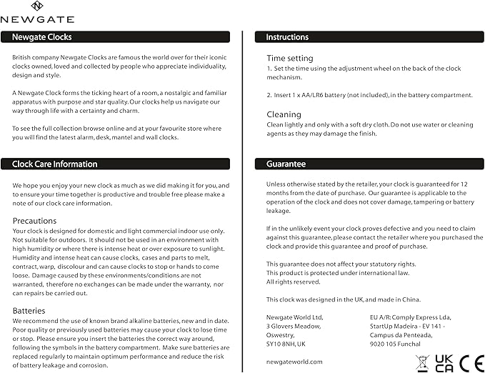- Accurate and reliable quartz silent sweep movement with no ticking noise. If your hearing is particularly sensitive in a completely silent room you may hear a very quiet whirring. Requires 1 x high quality branded alkaline AA battery (not included).