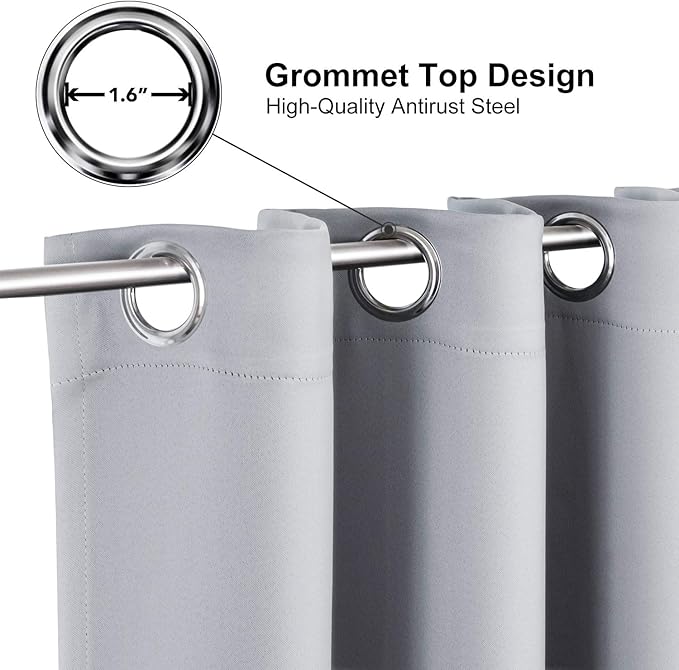ChrisDowa Grommet Blackout Curtains for Bedroom and Living Room - 2 Panels Set Thermal Insulated Room Darkening Curtains (Light Grey, 42W x 84L)