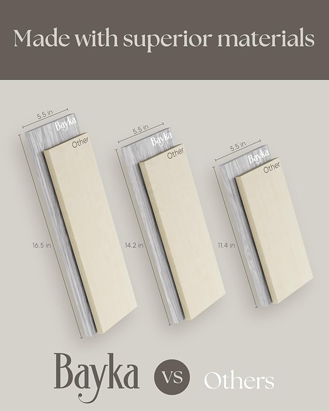 - 【Sturdier and Easy to Install: Large】16.5 × 5.5 × 4.6 inches; Medium: 14.2 × 5.5 × 4.6 inches; Small: 11.4 × 5.5 × 4.6 inches. These floating shelves are wider and sturdier than others to safely hold collectibles, photos, small plants and showcase favorite dishes or build your own coffee bar. Easy to assemble with all necessary hardware included according to the instruction steps.