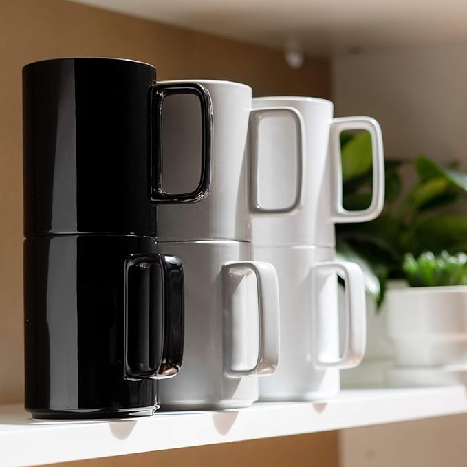 E-liu Porcelain Tea Mugs Coffee Mug Set, Large 15 Ounces Cups for Coffee, Tea, Cocoa, and Mulled Drinks, Set of 6, BlacK White Grey