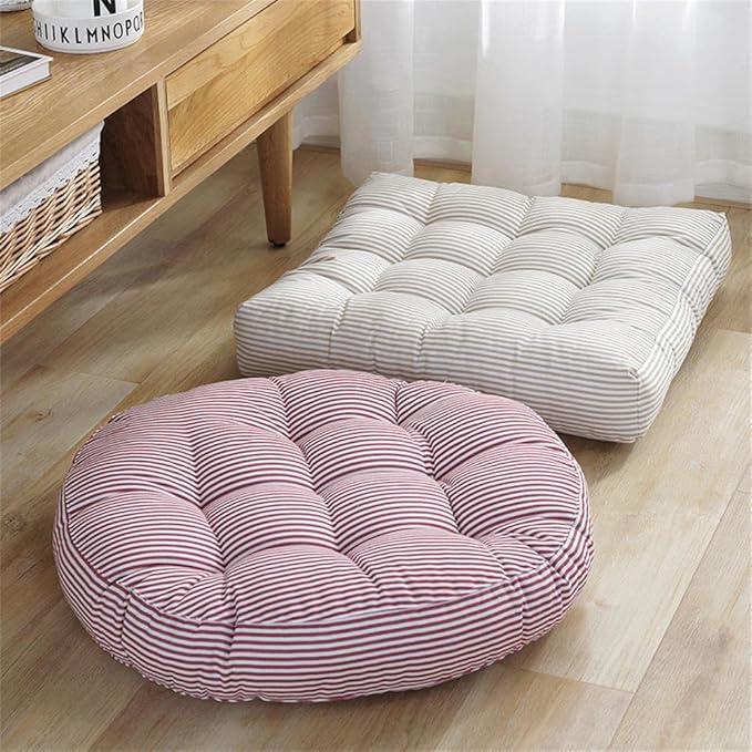 - 【Soft and Comfortable Home Floor Cushion】The cushion feels soft, delicate, warm and breathable. The stripe color is your most suitable choice which is perfect for indoor outdoor decoration or present. Special round hole design of the cushion can bring you massage-like comfort. The cushion makes you enjoy a high quality of life while for long time siting, travelling, or in the office.