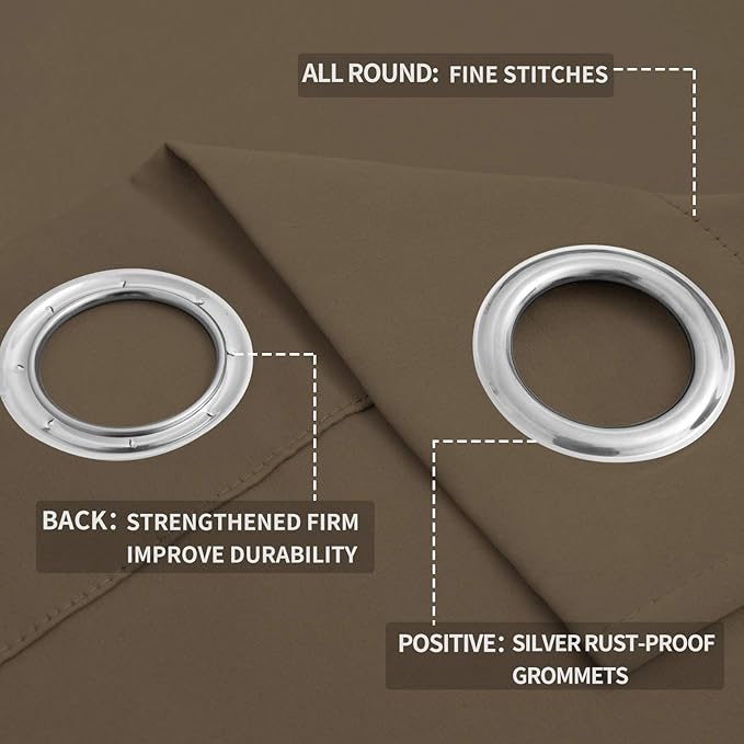 - Easy to Install: Each curtain panel has 8 silver metal grommets on top.Each grommet inner diameter is 1.6 inch, fits easily with standard curtain rods.Easy to hang, and slide smoothly. Perfect for office, bedroom, living room.