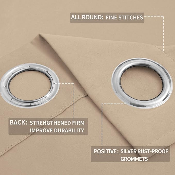 Easy-Going Blackout Curtains for Bedroom, Solid Thermal Insulated Grommet and Noise Reduction Window Drapes, Room Darkening Curtains for Living Room, 2 Panels (52x108 in,Beige)