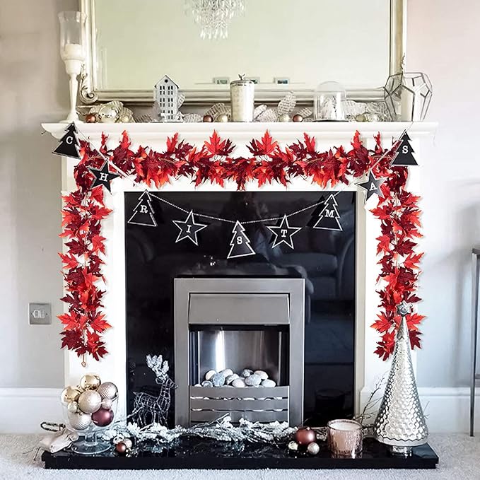 Lvydec 2 Pack Maple Leaves Fall Garland - 5.9ft/Strand Artificial Foliage, Red Fall Leaves Autumn Decoration for Home, Wedding, Party, Halloween, Thanksgiving