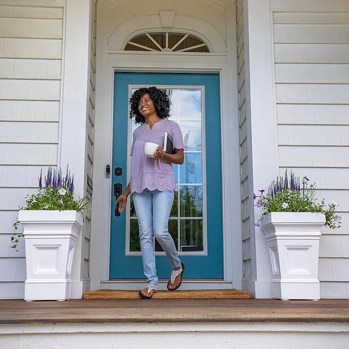 Step2 Atherton Square Planter, Large Planters for Outdoor Plants, Gardening and Flower Pot for Patio or Porch, Efficient Drainage, Durable Plastic, Classic White