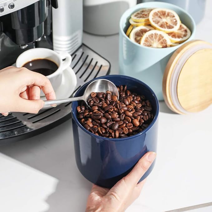 Sweejar Kitchen Canisters Ceramic Food Storage Jar, Stackable Containers with Airtight Seal Wooden Lid for Serving Coffee Bean, Flour, Tea, Spice and More - 39 Fl Oz (Navy)