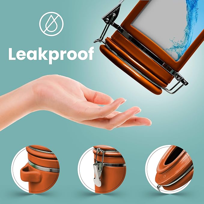 - AIRTIGHT SEAL FOR UNBEATABLE FRESHNESS: Featuring an airtight lid with silicone gaskets and a metal latch for perfect seal, this handy canister set will preserve the flavor of your supplies and keep them fresh and delicious. Perfect for any type of coffee, tea, sugar, flour, salt, candy, spices and so much more. Plus, they are 100% leakproof to prevent any messy spills