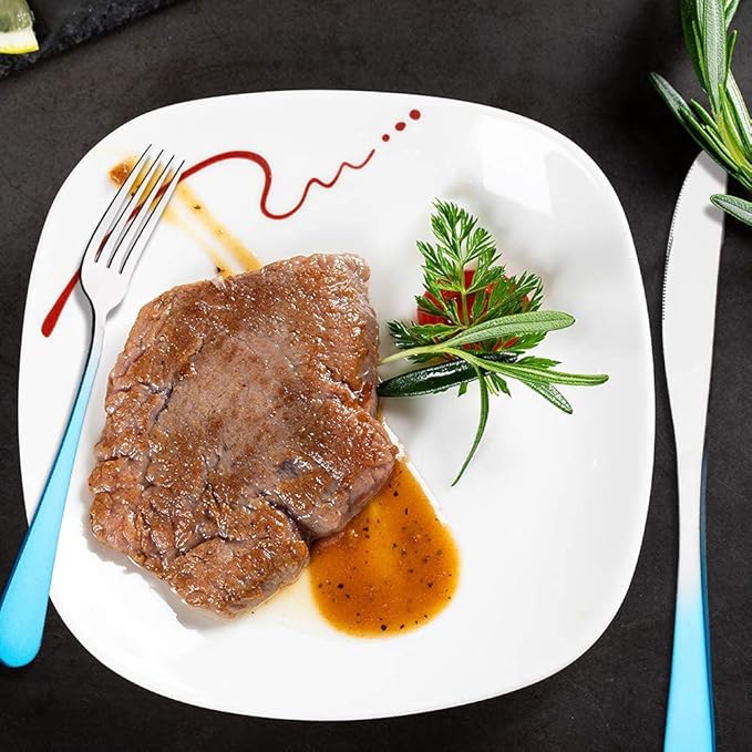Travel Utensils Set with Case Reusable Portable Cutlery Set Stainless Steel 8pcs Including Dinner Knife Fork Spoon Chopsticks straws(Gradient Blue)