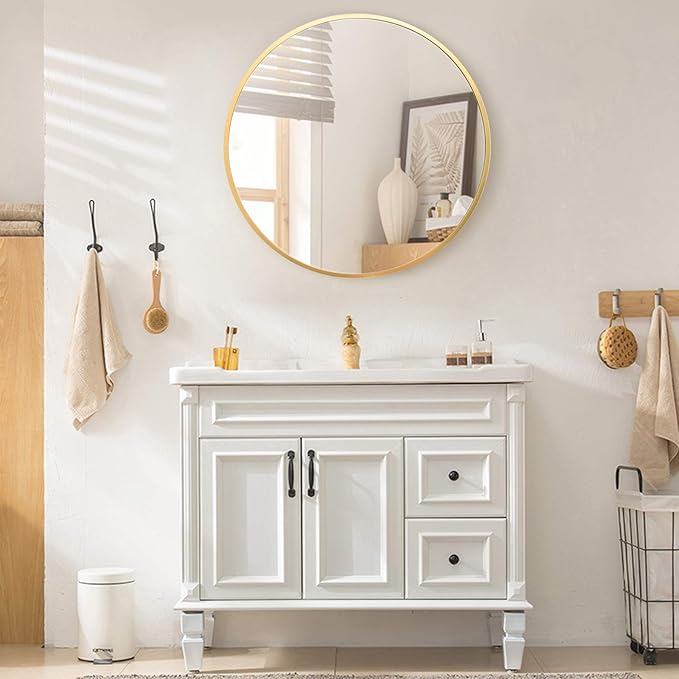 - Modern Brushed Frame Design: 18-inch gold circle mirror is crafted of an aluminum alloy metal sleek frame, making it ideal for bathroom mirror, entrance mirror, vanity mirror, living room mirror