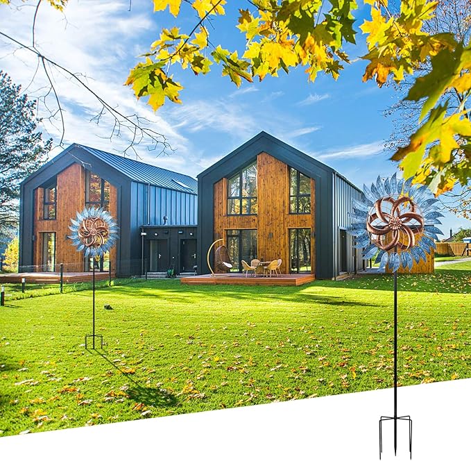 - Spin in Dual Direction - Each blade of our yard kinetic wind spinner is designed to rotate in opposite directions which makes it more stable when its windy. And the ball bearing construction allows our windcatcher to quietly spin even in the slightest breeze.