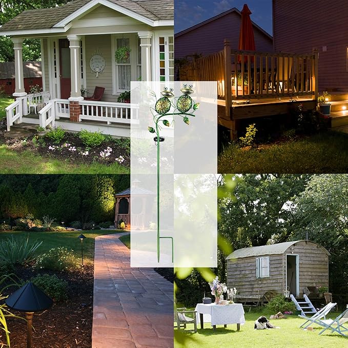 - Unique Design: The lovely frog garden stakes make the garden more vivid and bright, and decorate the garden well no matter in the day or at night.