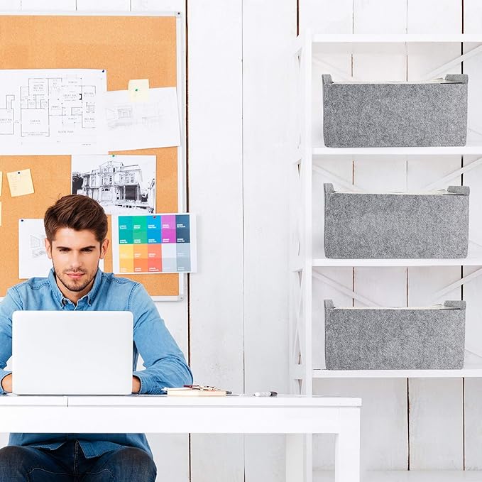 - 【Sustainable material】 Recycled felt with comfortable touch feeling, soft to prevent scratching,flexible for space saved up on desk, office ,bedroom, closet ,kitchen,bathroom or anywhere you desire with these stylish storage and organizer bins.