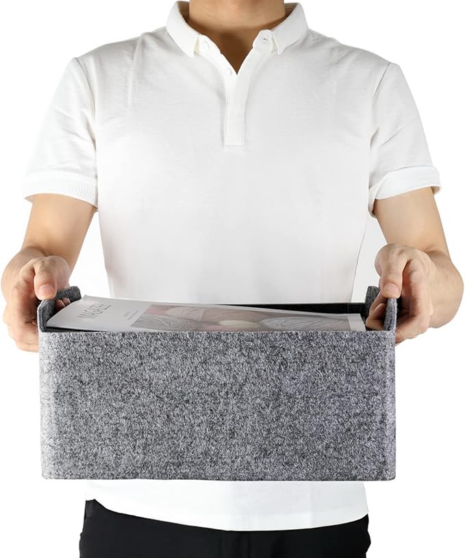 - 【Sustainable material】 Recycled felt with comfortable touch feeling, soft to prevent scratching,flexible for space saved up on desk, office ,bedroom, closet ,kitchen,bathroom or anywhere you desire with these stylish storage and organizer bins.