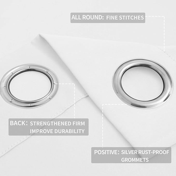Easy-Going Blackout Curtains for Bedroom, Solid Thermal Insulated Grommet and Noise Reduction Window Drapes, Room Darkening Curtains for Living Room, 2 Panels (52x46 in,White)
