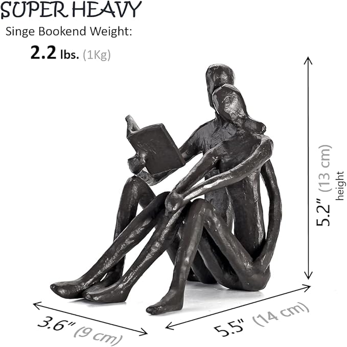 - HEAVY DUTY METAL - Each bookend is sturdy and made of cast iron. They’ll prevent your books from sliding. The lovely couple also makes for heartwarming shelf decor.