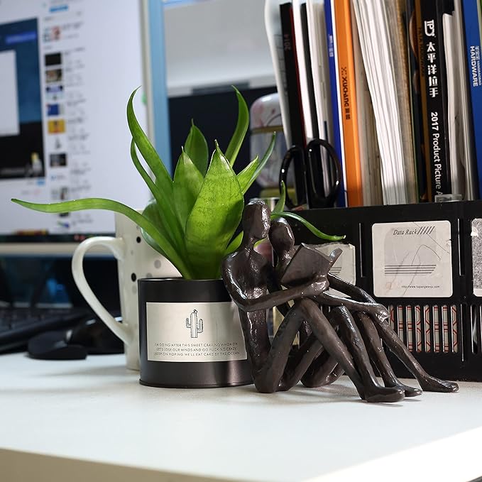 Ambipolar Romantic Reading Couple Bookshelf Decor, Cast Iron Bookend, Aesthetic Room Decor, Office Desk Decor, Home Decorative Bookend for Heavy Books, Satin Black