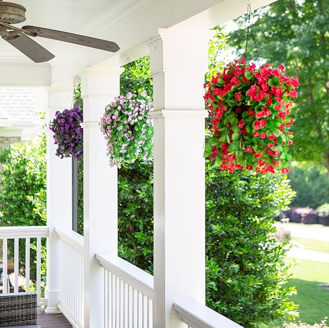 - GOOD QUALITY: The hanging basket and artificial flowers were made of good quality material that don’t require maintenance after assembly. It’s UV resistance and won’t fade, sturdy enough for any weather. No watering needs.