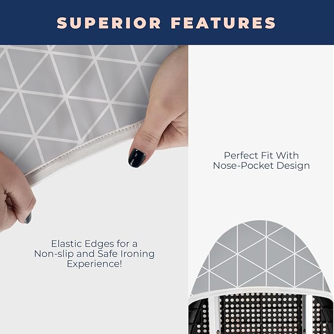 - PREMIUM ECO-FRIENDLY, PURE COTTON, NON-CHEMICAL TOXIC COVER - Breathable non-chemical cotton laminated with superior thick felt and foam. Toxic and unnatural materials can be harmful while ironing at 250 degrees Celsius. You no longer have to worry about your health while ironing with this eco-friendly material.