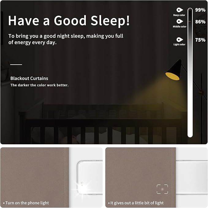 - Multiple Functions: Our curtains can block out sunlight and UV ray ( Darker colors work better), insulate against summer heat and winter chill to balance your room temperature, cut down energy bills. Reduce outside noise, privacy protection, create a good working and sleeping environment for you.