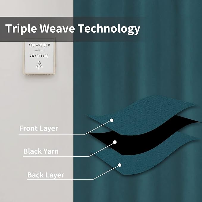 Easy-Going Blackout Curtains for Bedroom, Solid Thermal Insulated Grommet and Noise Reduction Window Drapes, Room Darkening Curtains for Living Room, 2 Panels(42x63 in, Peacock Blue)