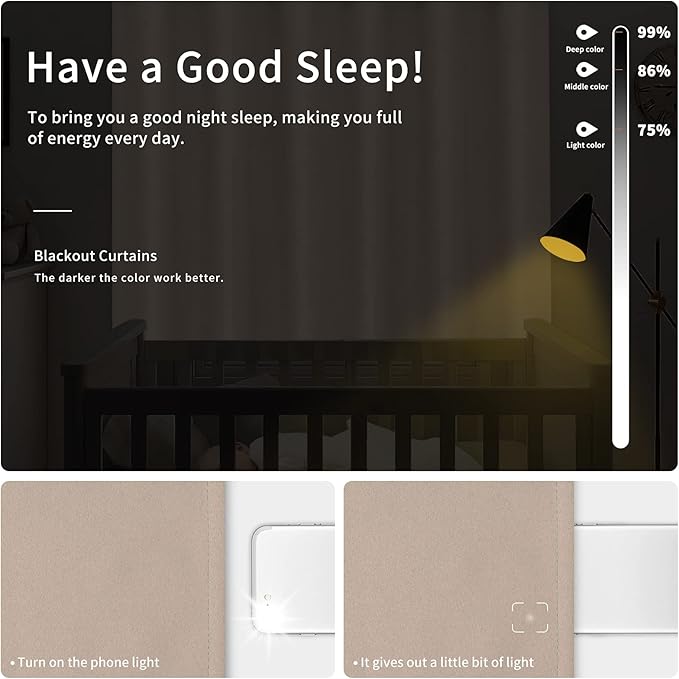 - Easy to Care: These blackout curtains are machine washable with cold water, please do not bleach, tumble dry on low, iron at low temperature if need.