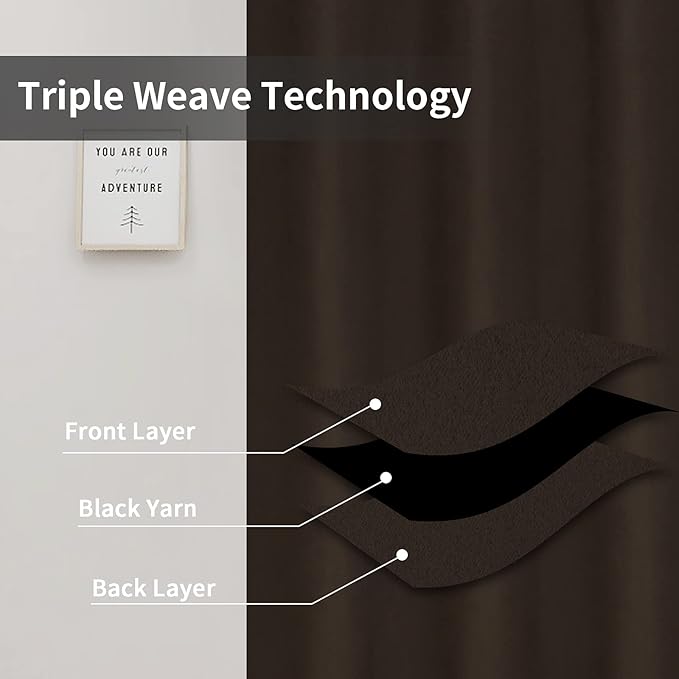 Easy-Going Blackout Curtains for Bedroom, Solid Thermal Insulated Grommet and Noise Reduction Window Drapes, Room Darkening Curtains for Living Room, 2 Panels(42x72 in, Dark Brown)
