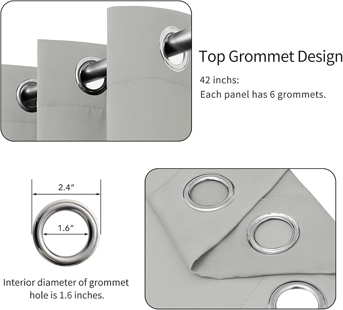 - Easy to Install: Each curtain panel has 6 silver metal grommets on top. Each grommet inner diameter is 1.6 inch, fits easily with standard curtain rods. Easy to hang, and slide smoothly. Perfect for office, bedroom, living room.