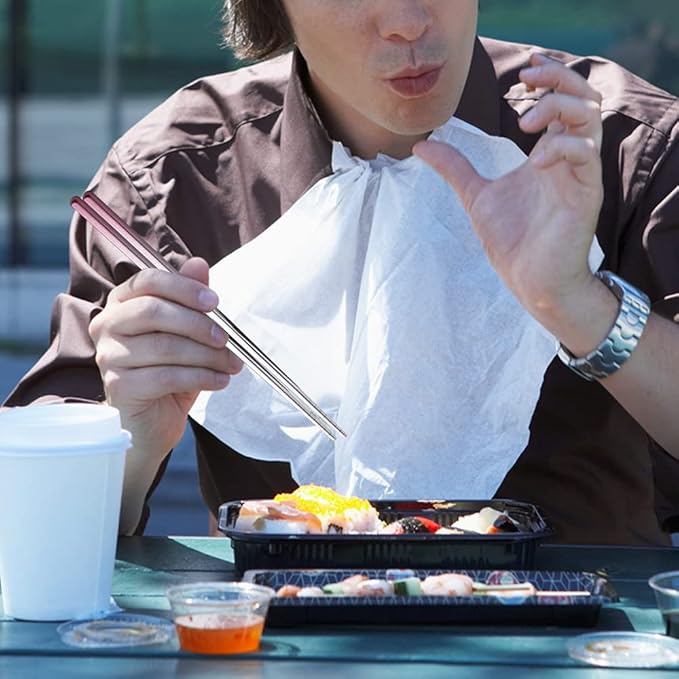- Eco-friendly & Easy to Clean- Say no to throwaway or single-use plastic flatware! It is an environmentally-friendly way to use this Reusuable travel flatware with chopsticks. The waterproof lining inside the travel cutlery sets is made of aluminum foil which is easy to clean.