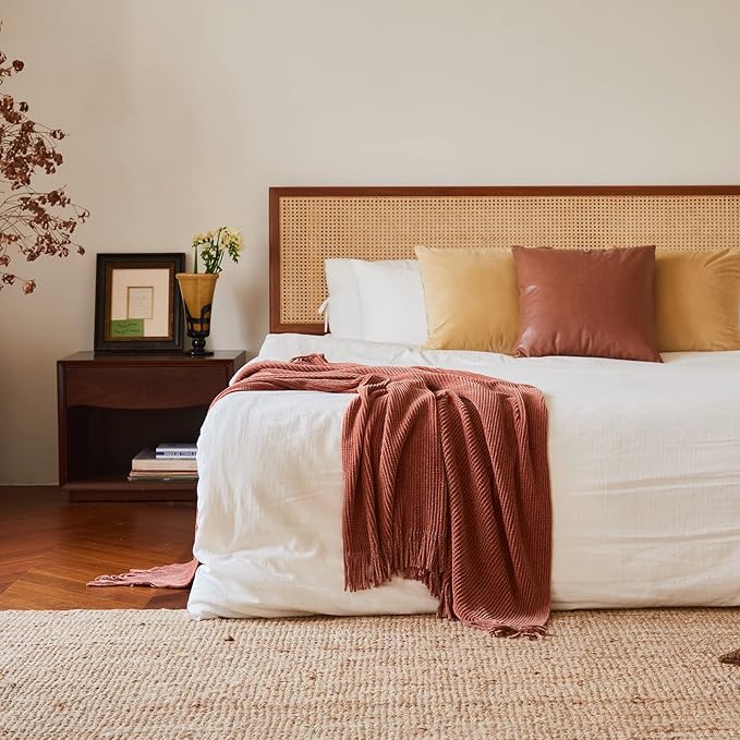 - 【FANTASTICAL DESGIN】LIFEIN throw blanket for couch nicely neutral solid knit design and well-arranged rustic farmhouse style fringes, this knitted throw blanket is in kinda terracotta/burnt orange or rust, which is a pretty easy way to match your room to add an extra solid terracotta boho feature, don't you want have a rust throw blanket for your home decor?