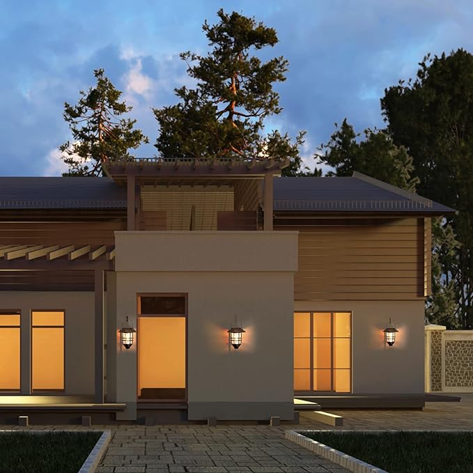 - Stylish Solar Wall Lantern:This outdoor solar lantern is modern and classic design.Real clear glass and high quality metal makes them look so elegant ,sturdy and gives off a nice amount of ambient warm lighting at night.No worry turning on/off light for outside anymore.The solar lantern is a pleasant addition in your front porch ,fence post, wall, backyard