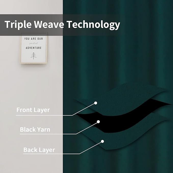 Easy-Going Blackout Curtains for Bedroom, Solid Thermal Insulated Grommet and Noise Reduction Window Drapes, Room Darkening Curtains for Living Room, 2 Panels(46x63 in, Deep Teal)