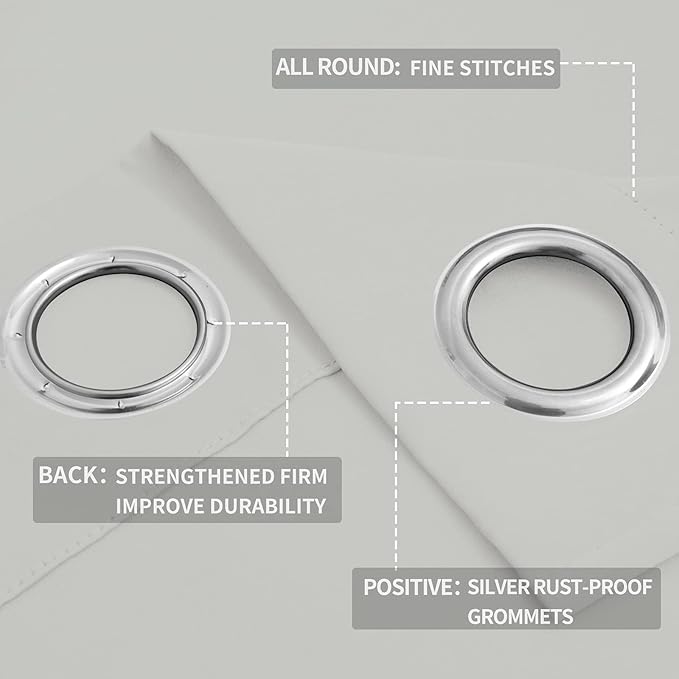 - Easy to Install: Each curtain panel has 8 silver metal grommets on top. Each grommet inner diameter is 1.6 inch, fits easily with standard curtain rods. Easy to hang, and slide smoothly. Perfect for office, bedroom, living room.