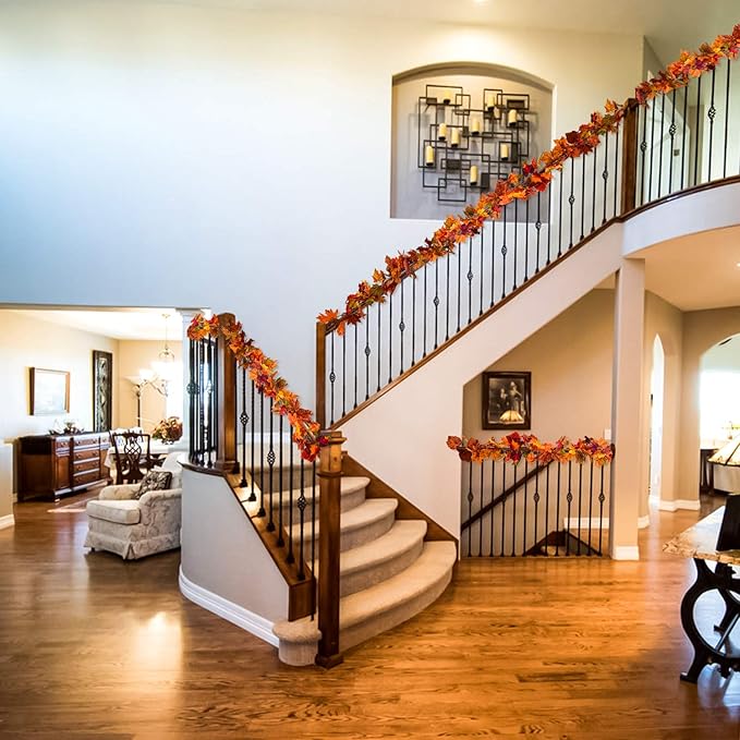 Lvydec 4 Pack Fall Maple Garland - 5.9ft/Strand Artificial Fall Foliage Garland Realistic Maple Leaves Autumn Decor for Home Wedding Halloween Thanksgiving Party (Mixed Color)