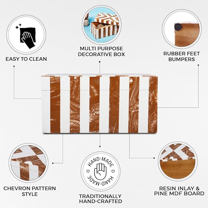 Handicrafts Home Handmade Chevron Pattern Decorative Box - Storage Organizer, Decor Centrepiece, Memory Keepsakes, Home Decor - Boho Style Treasure Box, Multipurpose Gift - Brown, 10x5x5