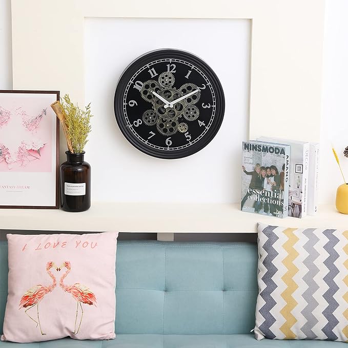 - [Accurate Quart Movement ] Based on quality quartz movement, it function as beautiful wall decor pieces besides telling time, and bring both style and purpose to any room. Sit and watch the time fly by with this stunning gear clock